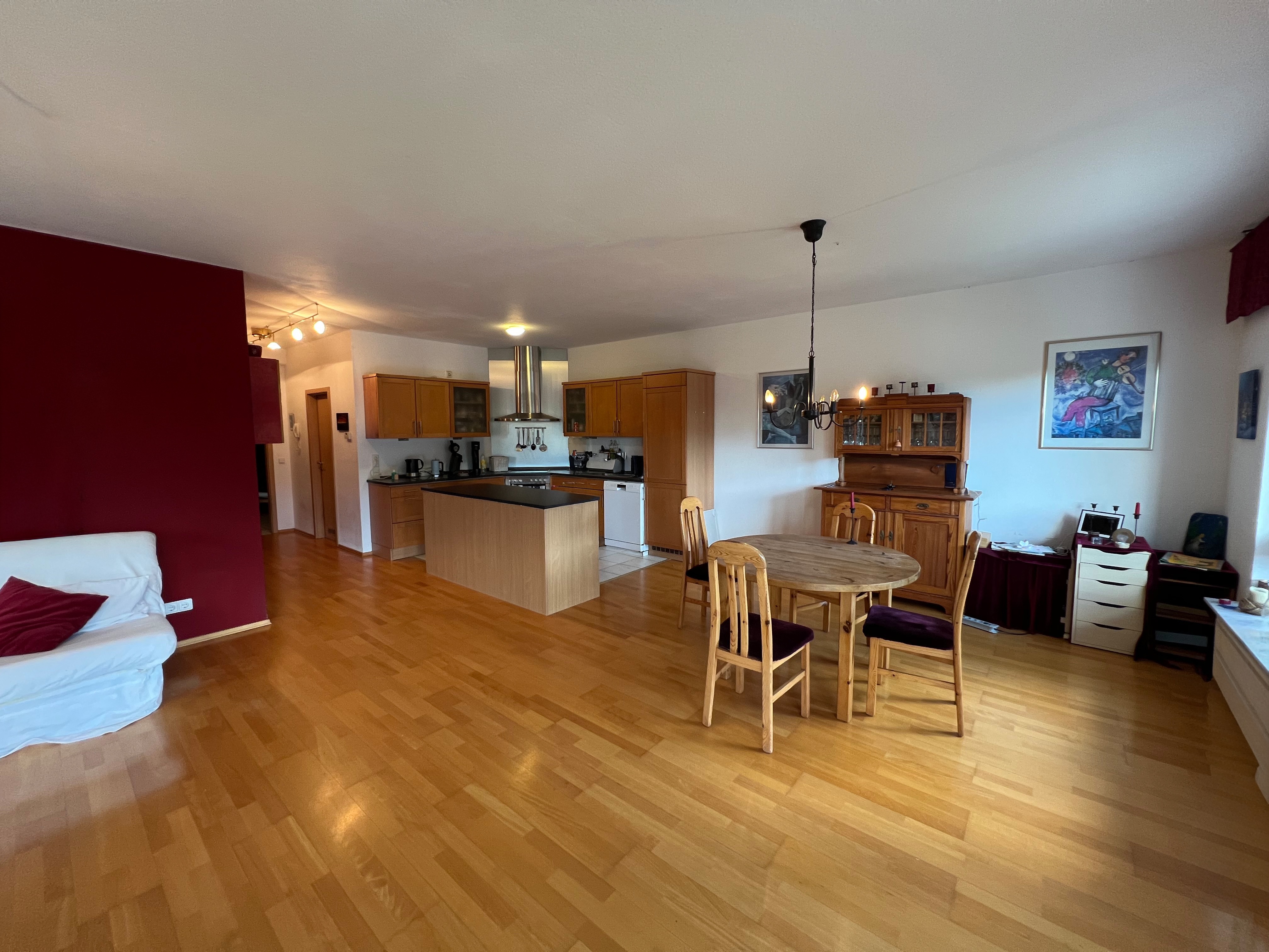 Der Mittelpunkt der Wohnung ist der großzügige Wohn- und Essbereich. Durch die offene Gestaltung entsteht ein angenehmes Raumgefühl, das sowohl im Alltag als auch für Gäste ideal geeignet ist. Die Küche ist mit einer Kochinsel ausgestattet, die sowohl funktional als auch gestalterisch überzeugt und den Raum zu einem zentralen Treffpunkt macht.