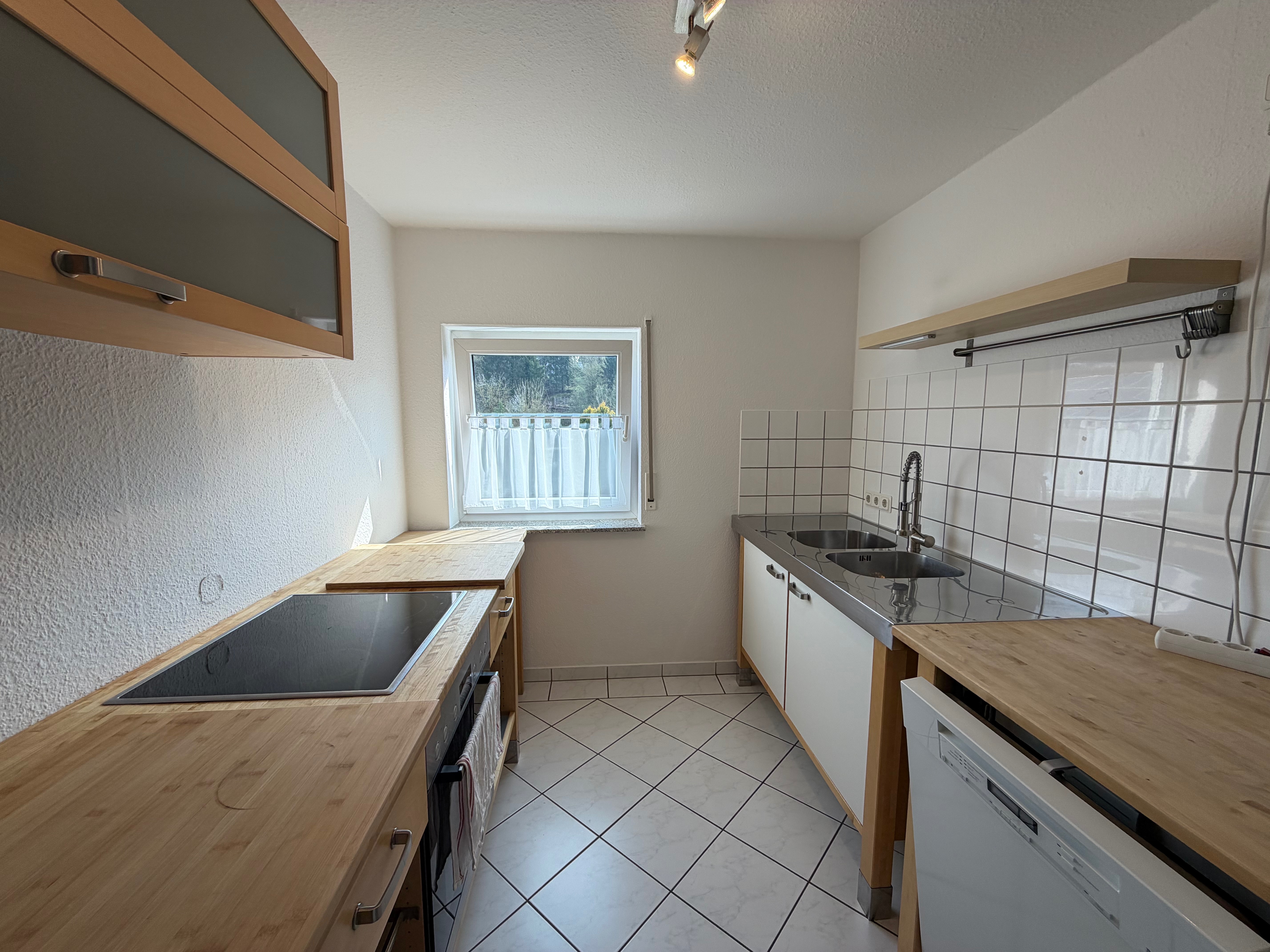 Die Küche ist funktional geschnitten und wird durch einen separaten Hauswirtschaftsraum ergänzt, der zusätzlichen Stauraum und praktische Nutzungsmöglichkeiten im Alltag bietet. Die vorhandene Küche kann nach Absprache vom Vermieter übernommen werden.
